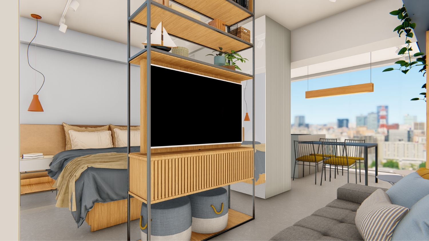 Esta decisão exigiu coragem e desapego para abrir mão de sua base residencial de muitos anos, com 150m², para outra 5 vezes menor, com 33m², que irá permitir, com mais liberdade, estar em casa ou em qualquer outro lugar, a qualquer momento.